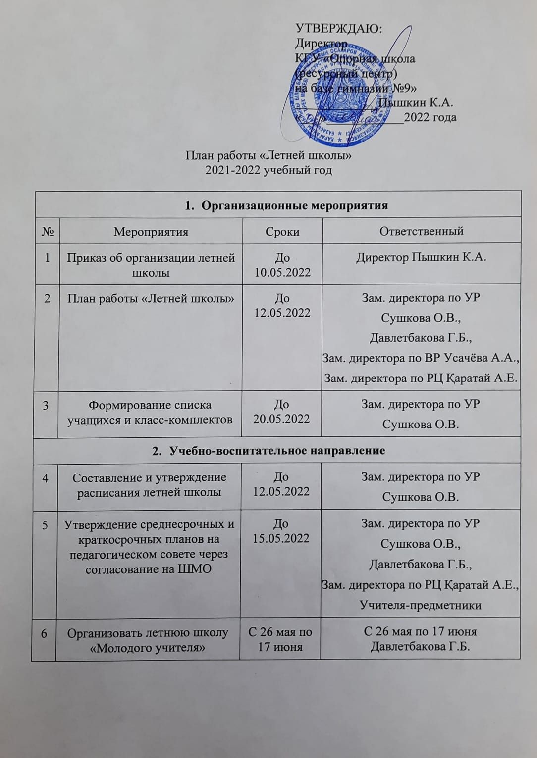 Страницы КГУ «Опорная школа (ресурсный центр) на базе гимназии №9» отдела образования Осакаровского района управления образования Карагандинской области.