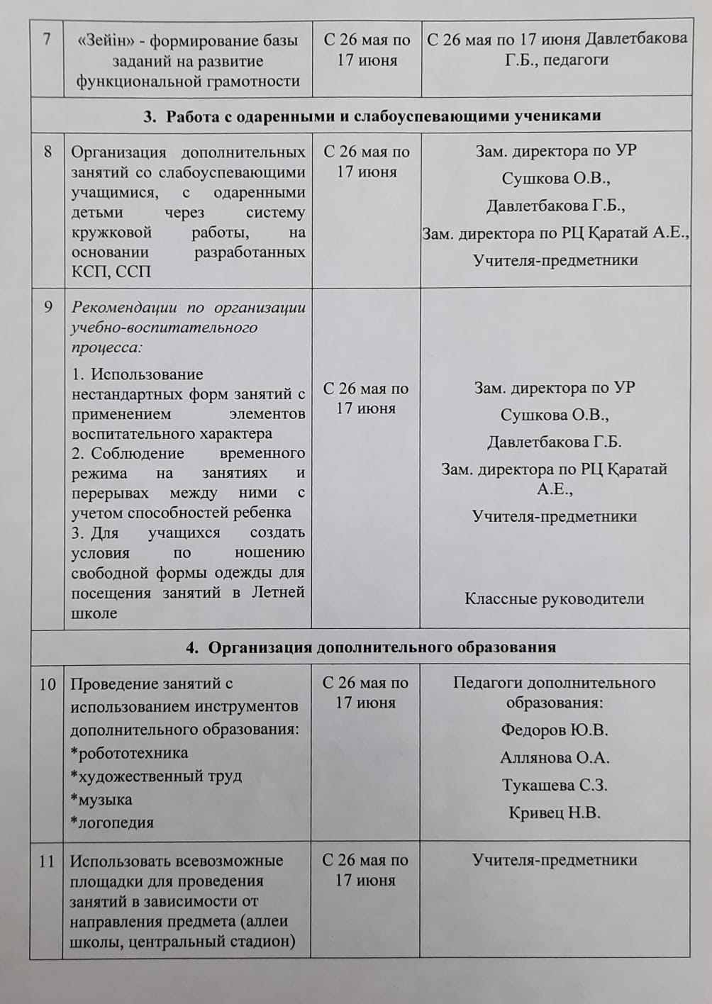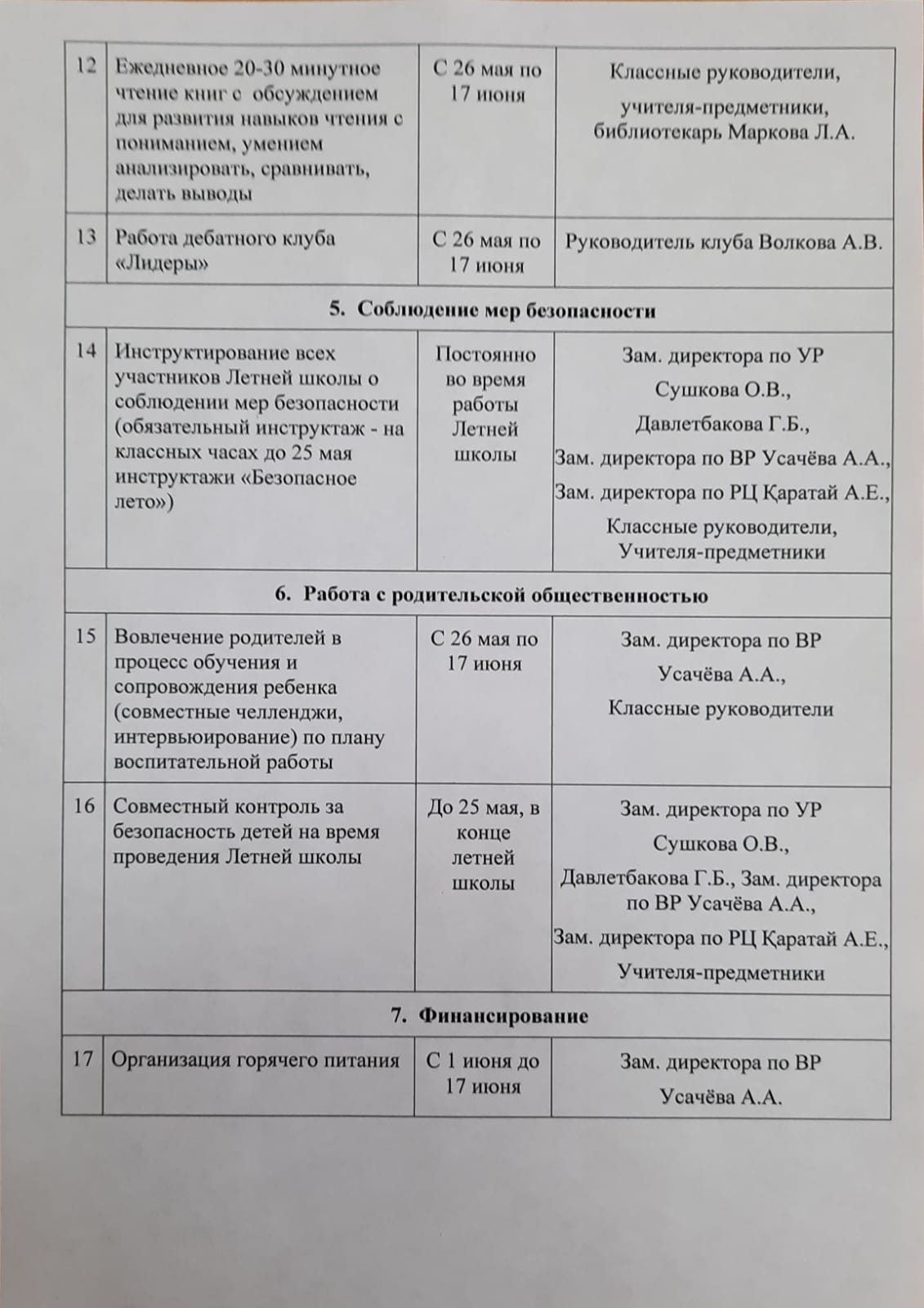 План работы