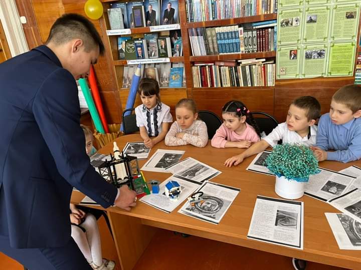 Именно, Тохтару Аубакирову был посвящен библиотечный урок в 9 «Б классе.» Библиотекарь, Маркова Л.А., подготовила ребятам презентацию о жизни и его деятельности космонавта и пилота. Ребята увлеченно отвечали на вопросы викторины, вспомнили основоположников космонавтики, рассказали о первом космонавте Юрии Гагарине, о звездах и планетах.