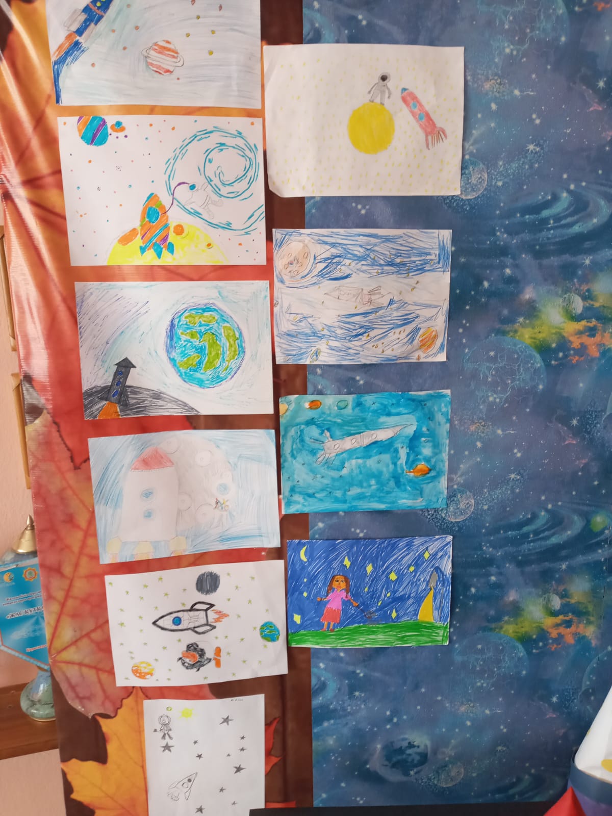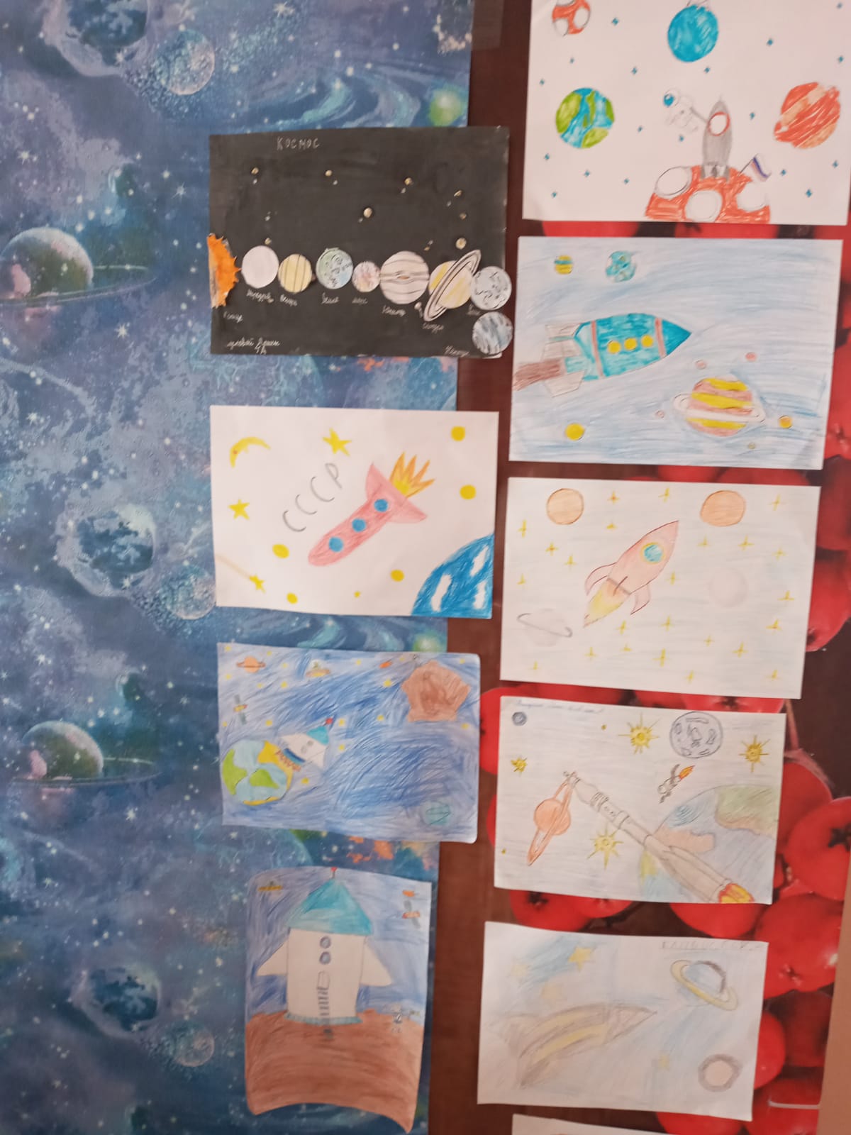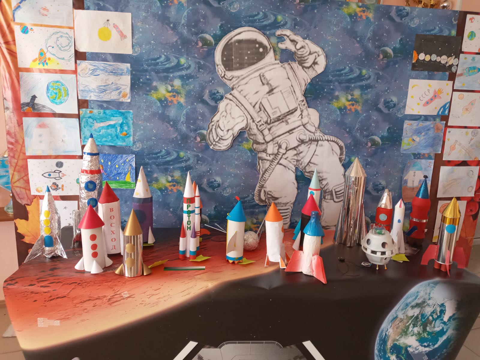 Также в гимназии была организована выставка макетов ракет, сделанных руками детей и рисунками на тему «Космос»